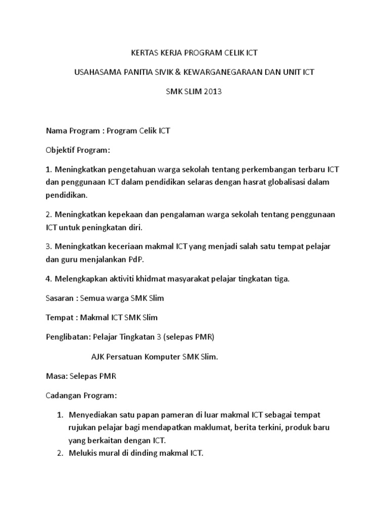 Kertas Kerja Program Celik Ict Pdf